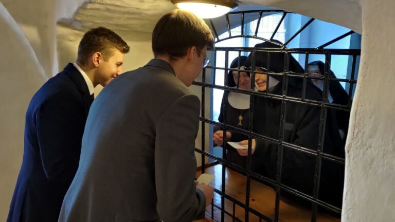 Vánoční oslavy jsme zahájili zpěvem nešpor, následovalo lámání oplatků a vzájemná přání. Po večeři jsme za klauzurou společně zpívali koledy a poté se konala tradiční půlnoční mše svatá – Pasterka. Další sváteční dny jsme trávili v komunitě a také jsme navštívili sestry klarisky.