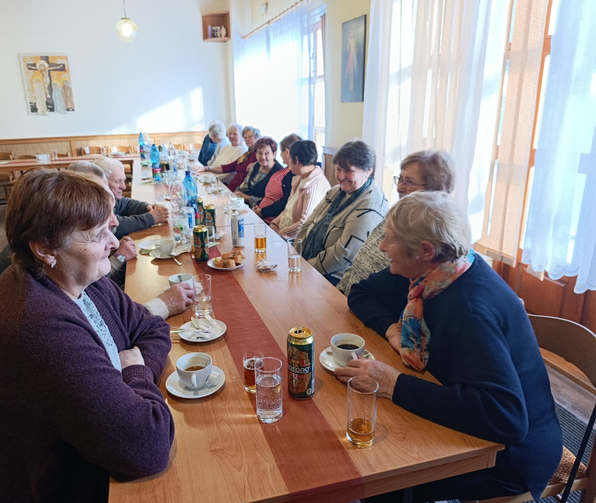 Během oběda byl dostatek času na rozhovory, sdílení životních příběhů, budování vztahů a vzájemné povzbuzení. Nikdo nespěchal – každý se cítil jako v rodině, přijat s otevřeným srdcem a pozorností.